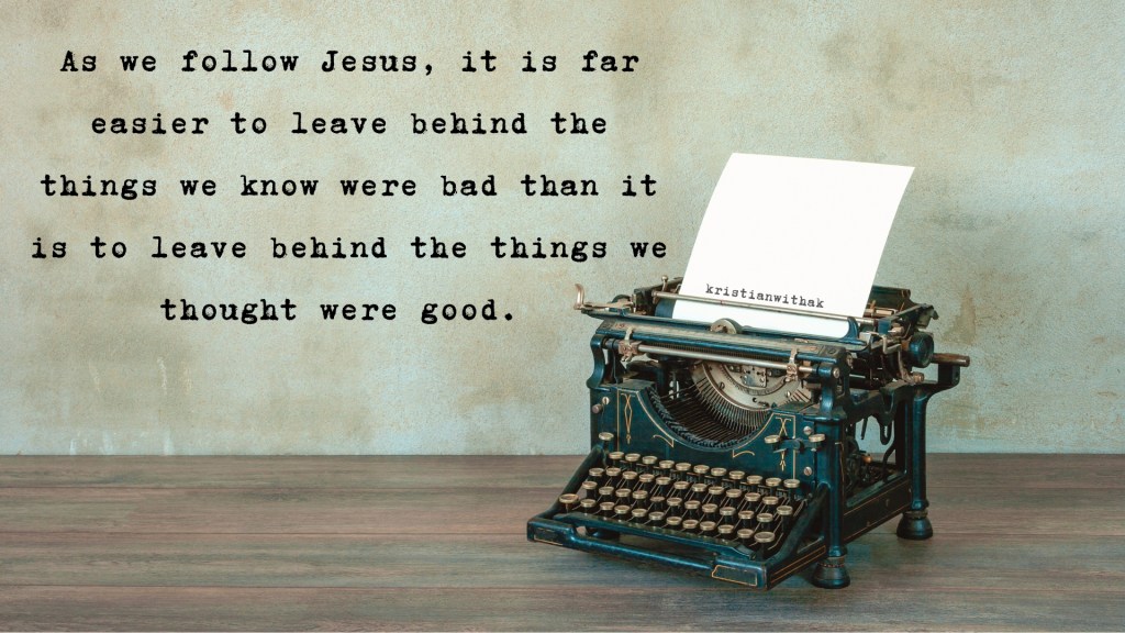 And a powerful truth emerges with strong clarity: as we follow Jesus, it is far easier to leave behind the things we know were bad than it is to leave behind the things we thought were good.
