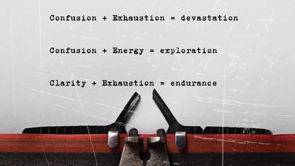 Clarity + Exhaustion leads to endurance, perseverance and sometimes a healthy view of rest.